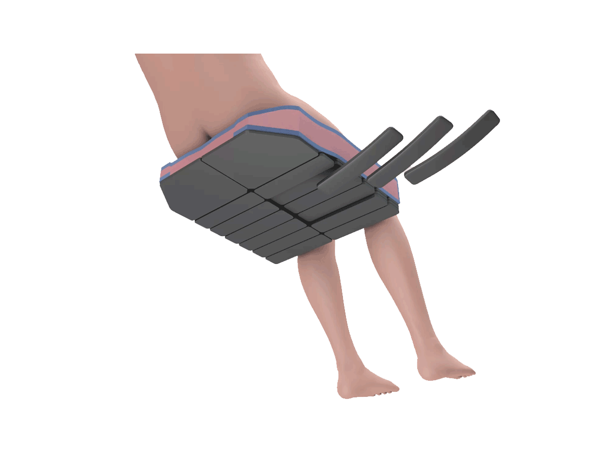 - Gel-foam ischial well evenly distributes pressure under the pelvis