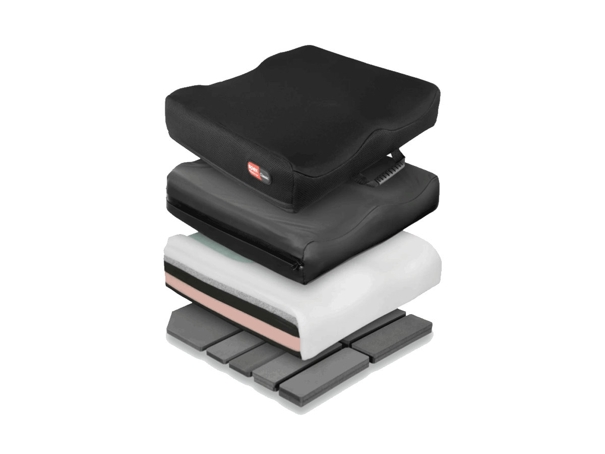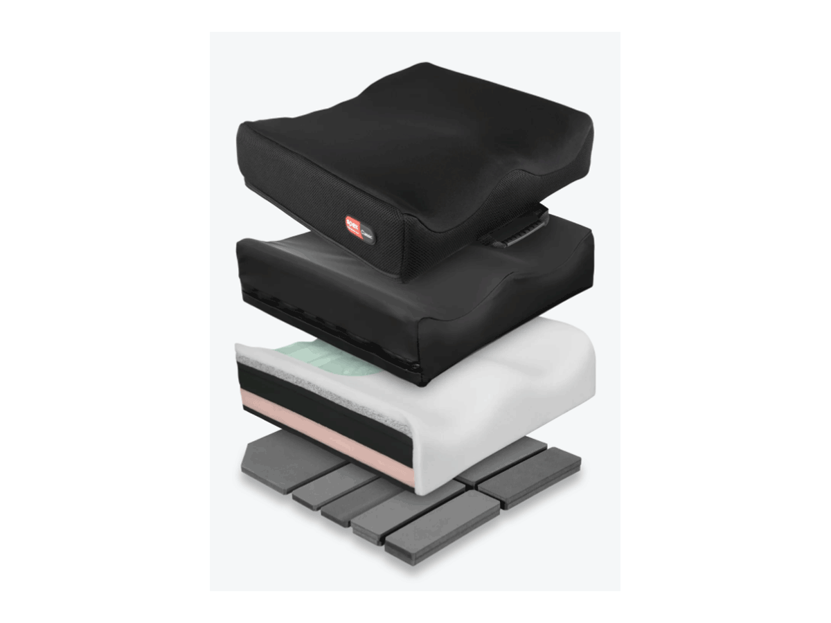 - Dual-layer cover reduces shear forces, and breathable air-mesh on cushion sides counters moisture