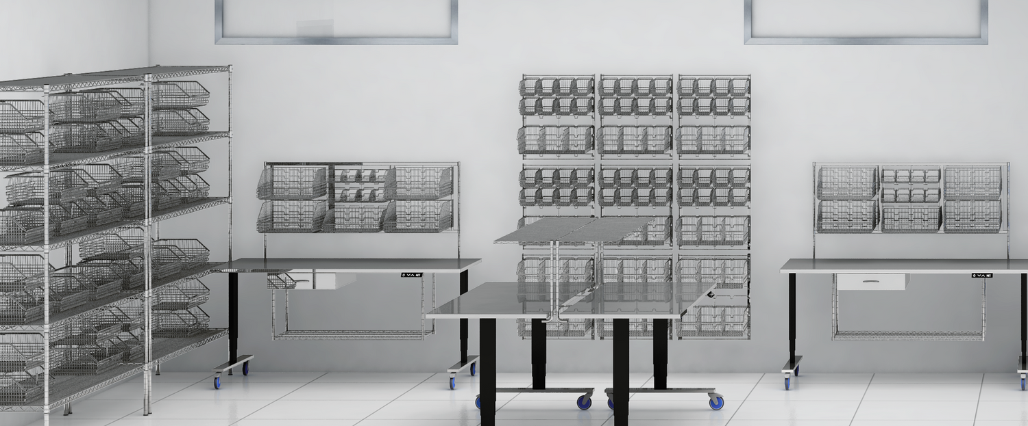 With four different sized basket options, wall panels and accessories, we can create a space saving solution.