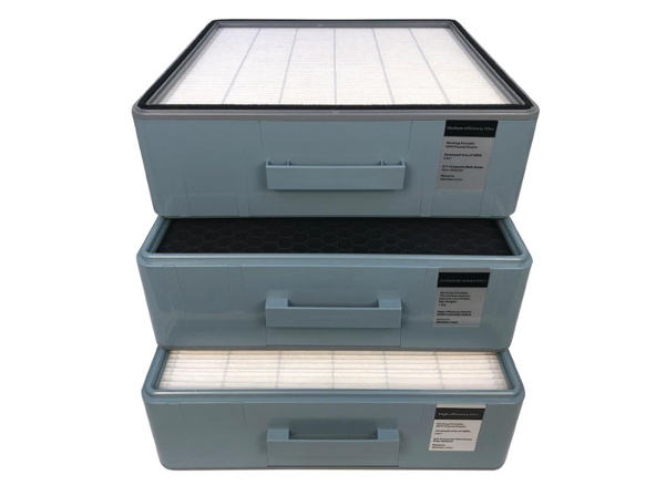 The Advanair multiple-layer filter purification pack includes a high-density HEPA 13 filter tray, active carbon natural catalyst filter tray and H11 ultra-fine HEPA filter tray (3 trays included). Suits the AP1200 air purifier.