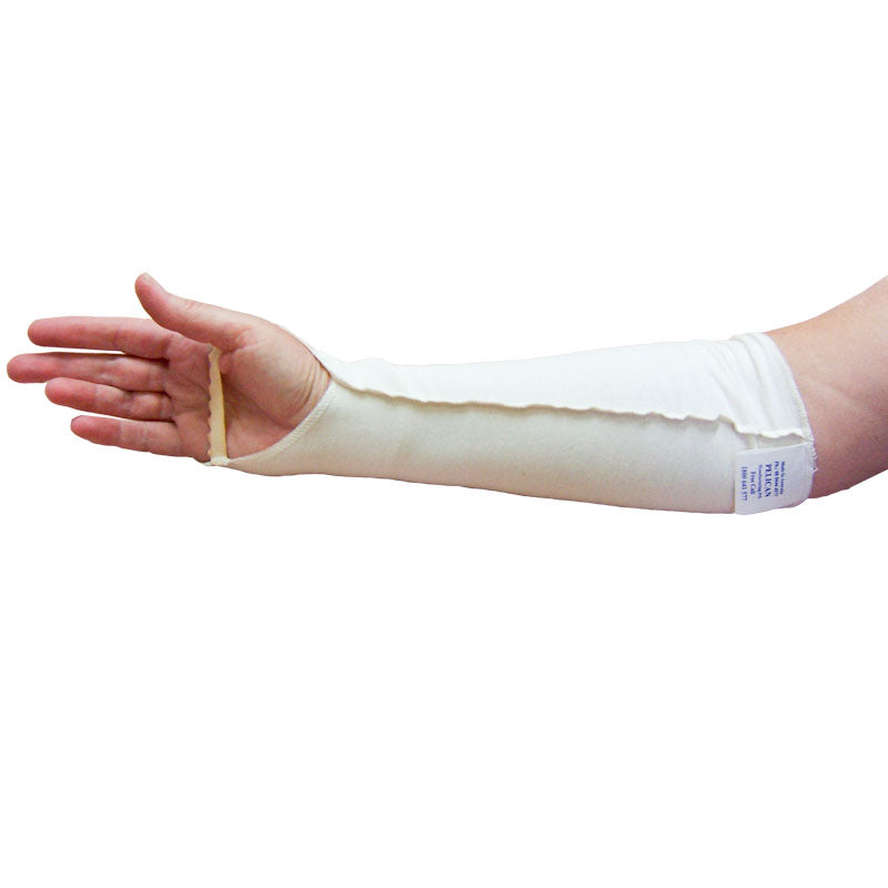If you need some extra protection over a particular area of the arm, place some padding between the arm and the sleeve. Always inspect the arm for an adverse reaction to the patient continually wearing the Arm/Leg Shearing Sleeve.