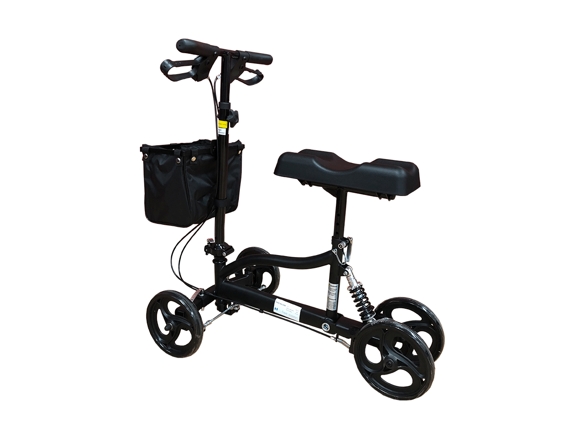 The Knee Walker is an excellent alternative to crutches or traditional walkers. Intended to support the leg below the knee in patients who are not able to weight bear due to lower limb injury or who are recovering from surgery. With front steerable castors and dual handbrakes, the knee walker provides manoeuvrability but prevents back and shoulder muscle strain regularly associated with conventional crutch use.