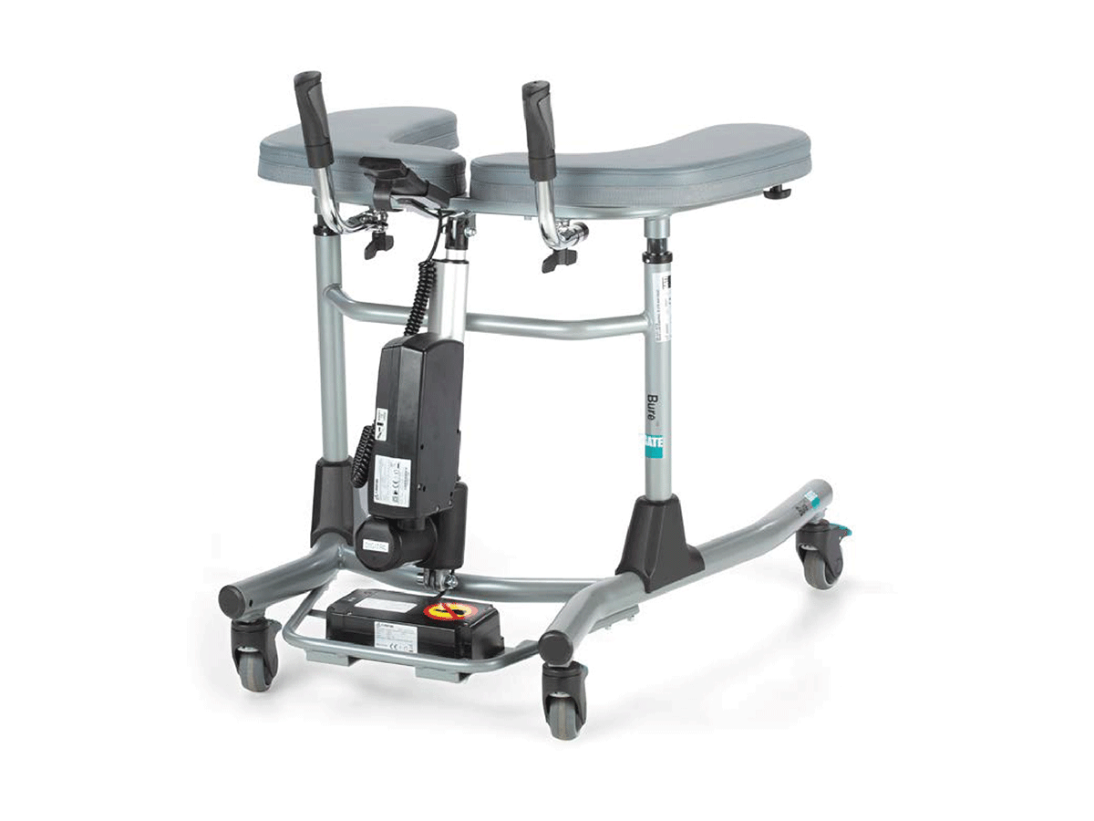 The compact footprint of the Bure S range makes it perfectly suited to home or care accommodation, allowing easy passage through doorways 70cm or wider. The electric versions are an excellent way to assist patients and users stand while minimising the risk of strain injuries to carers. Some patients can even get up on their own using the StandTall Walker using the easily reachable hand controller.