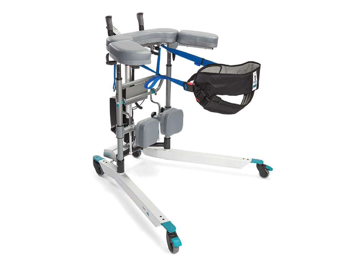 The Bure Rise and Go DB Walker is enhanced with a patented power rise function, making it a versatile stand assist lift, patient transfer and walking aid, all in one product. The stepless powered height and leg width adjustment allow simple, convenient and safe standing assistance.