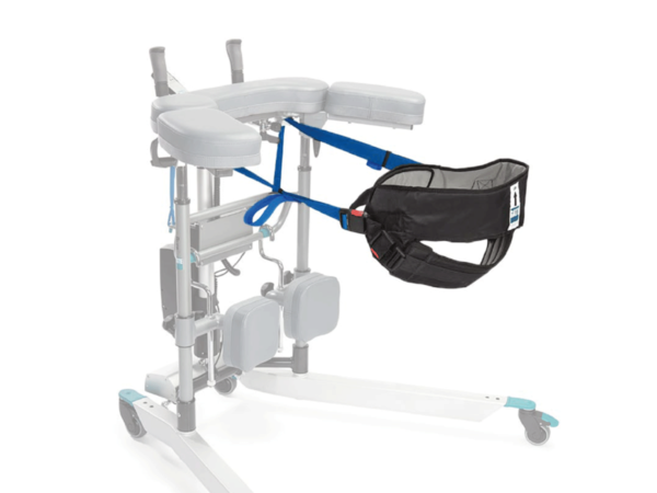 The walker incorporates the use of a split standing harness (available in 3 sizes) which fits over the patient’s lower back and bottom. Once the power rise is completed, the knee supports can be swung away to allow the Rise and Go DB to be used as a walker. Alternatively, by attaching the platform, patients can simply place their feet on the platform and are ready to be moved or transferred once the power rise is completed.