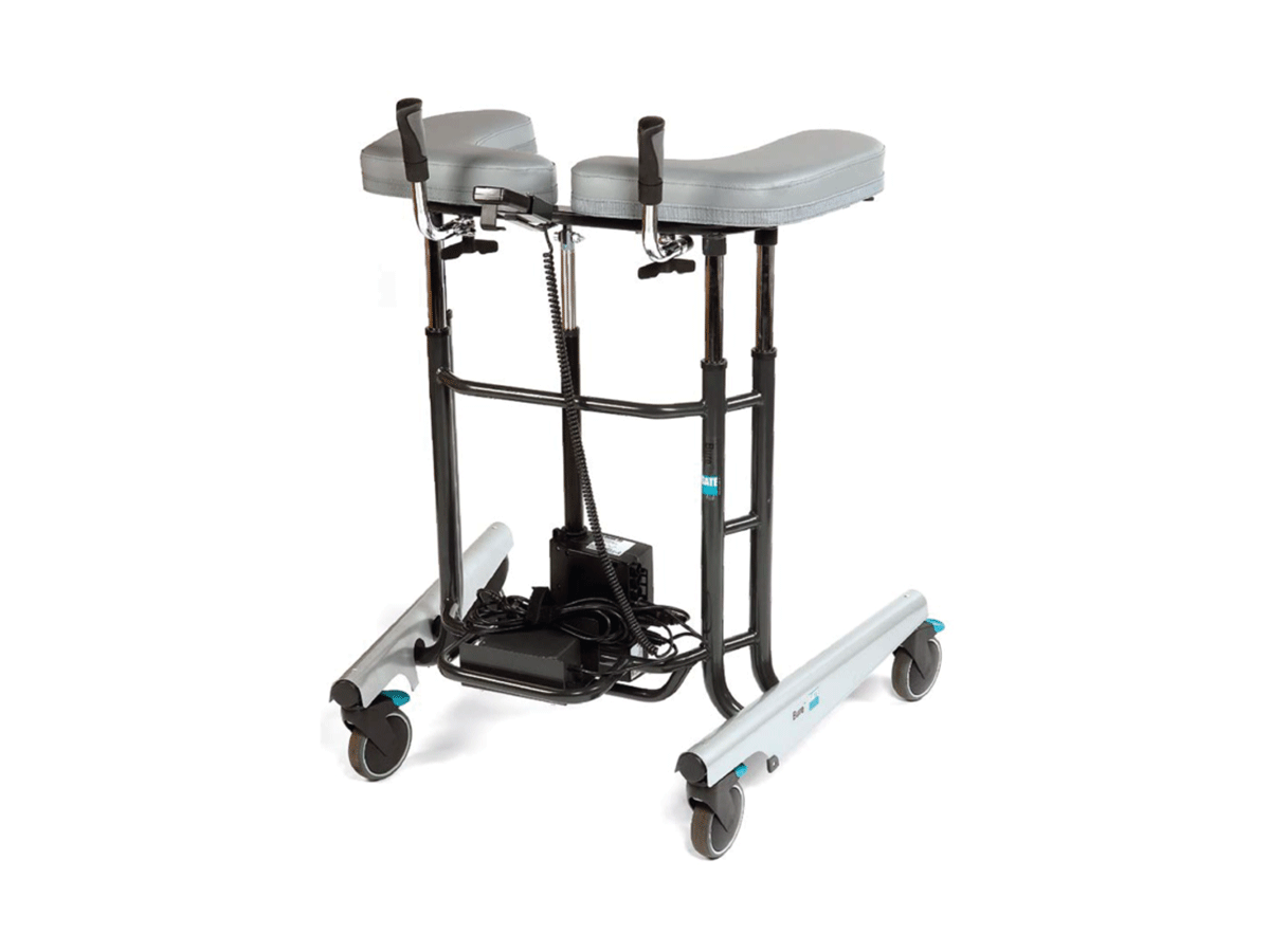 The Bure XL was specifically designed for bigger, heavier patients and so allows extra space and a stronger, reinforced frame design. The Bure XL is always supplied with electric drives. The forearm support height adjustment is step-less and the ergonomic handles are adjustable in every direction for optimum comfort. This StandTall Walker has also been widened to provide good stability and plenty of space with an inner dimension of 44cm – 62cm.