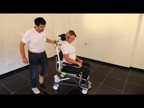 The seat and backrest tilt as one, keeping the client in a stable position. The electrically operated tilt is seamless. It is easy for the caregiver to operate the system using only one hand and without any effort, thus facilitating the most comfortable position for both the client and caregiver. It is easier for the client to stand up from the chair from a sitting position because of the forward tilt.