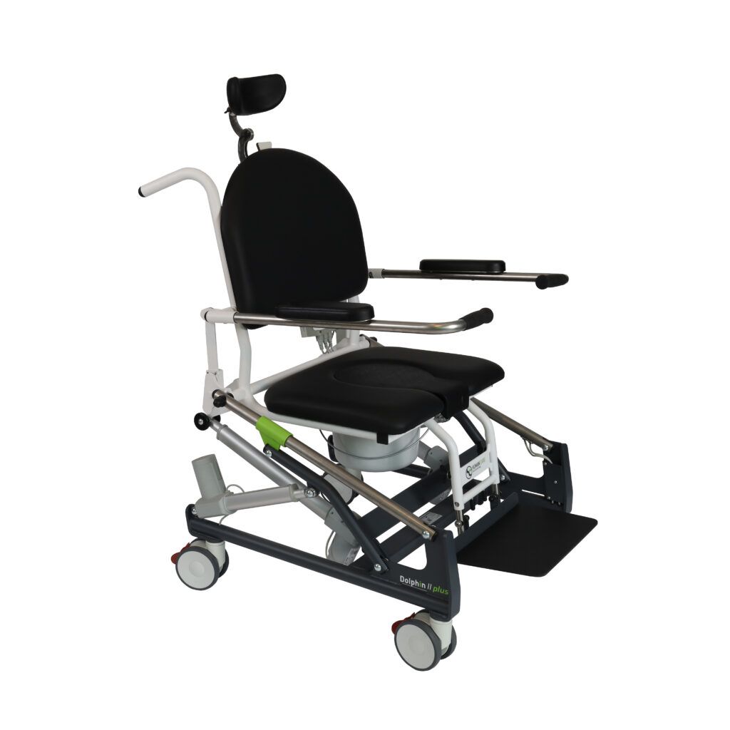 Our Dolphin Plus allows personal hygiene activities to be carried out in the most ergonomic manner. While the client is sitting in a relaxed, tilted position, the optimal height adjustment function prevents the caregiver from having to stoop.