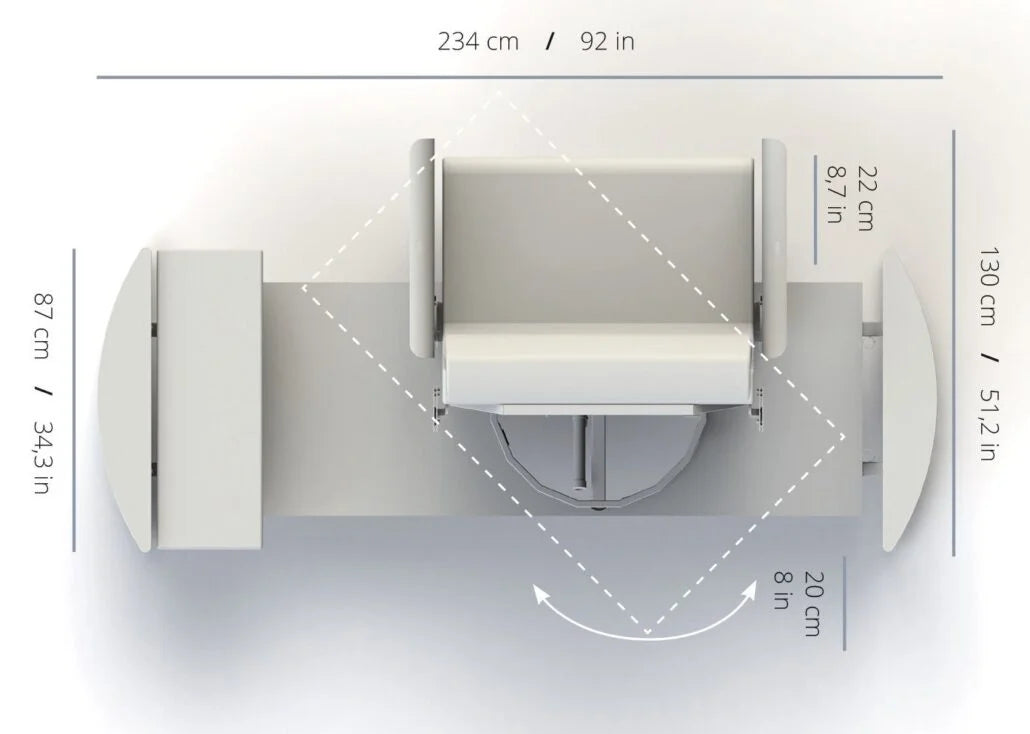 With a RotoBed® CHANGE, people who have difficulty getting in and out of bed are now able to do so with no physical effort. Just by a single touch of a remote control the bed is elevated to chair position and rotated towards the room. This facilitates both exit and transition to a wheelchair or stand-aid, simple and comprehensive remote control.