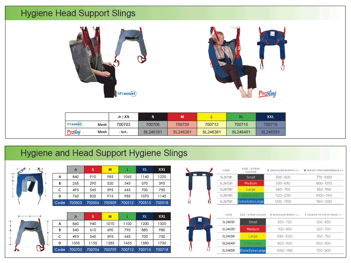 SKU: SLINGGUIDEThis Sling Comparison / Selection Guide is available as a download. It is intended to help you find the sling codes and corresponding sizing charts to help you select the correct sling for your client.