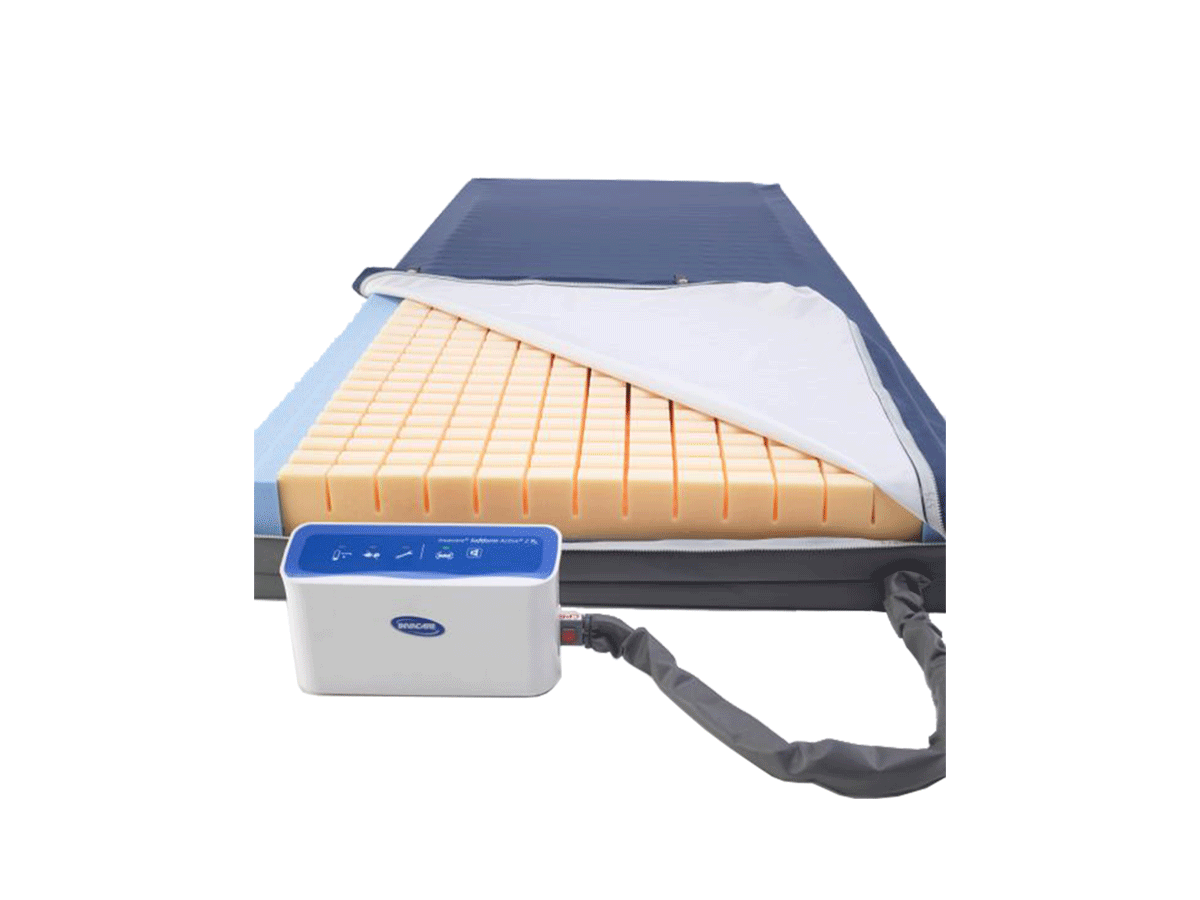 As a static mattress, the Premier Active 2 is suitable for patients considered at high risk of pressure injury development. The benefit of this system is that should it be deemed clinically necessary, the surface can be stepped up to a dynamic surface by fitting a pump to the air insert, thereby allowing additional levels of pressure relief. This reduces a lot of moving and handling issues as the mattress can stay on the bed for a wide range of patients.